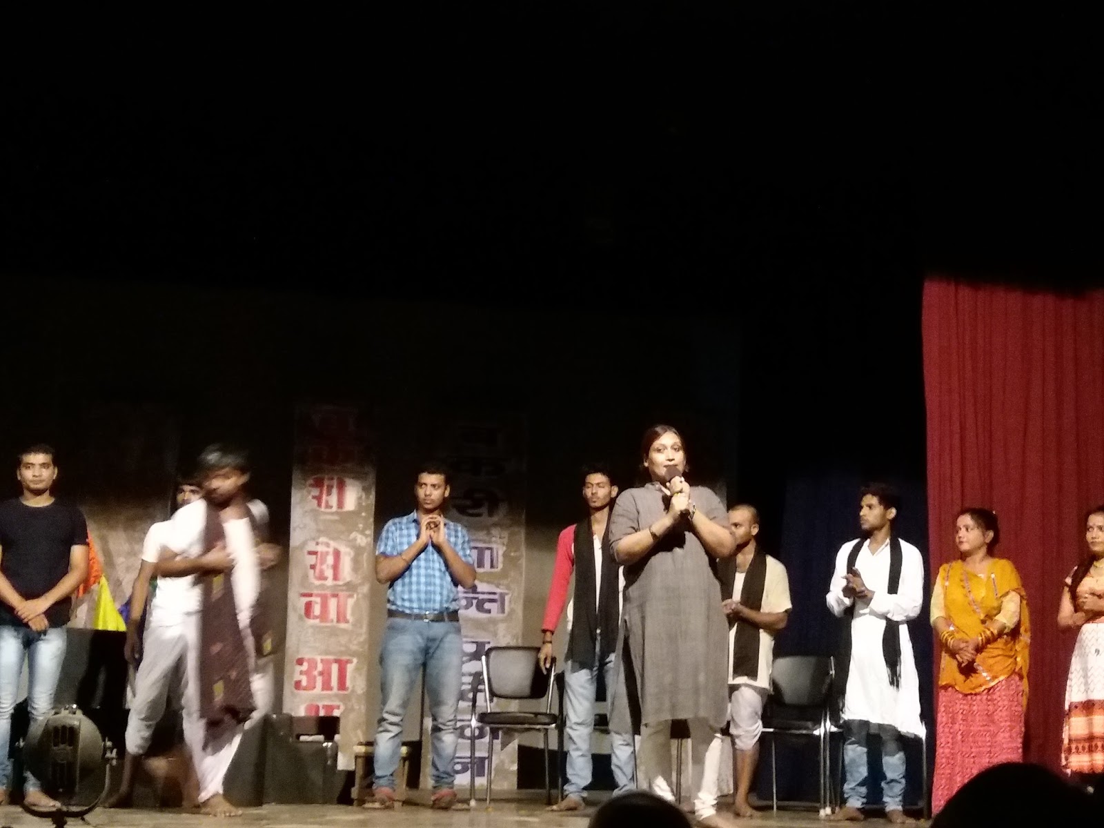 | 'बकरी' नाटक की निर्देशक अपने पात्रों का परिचय करवाती हुईं |